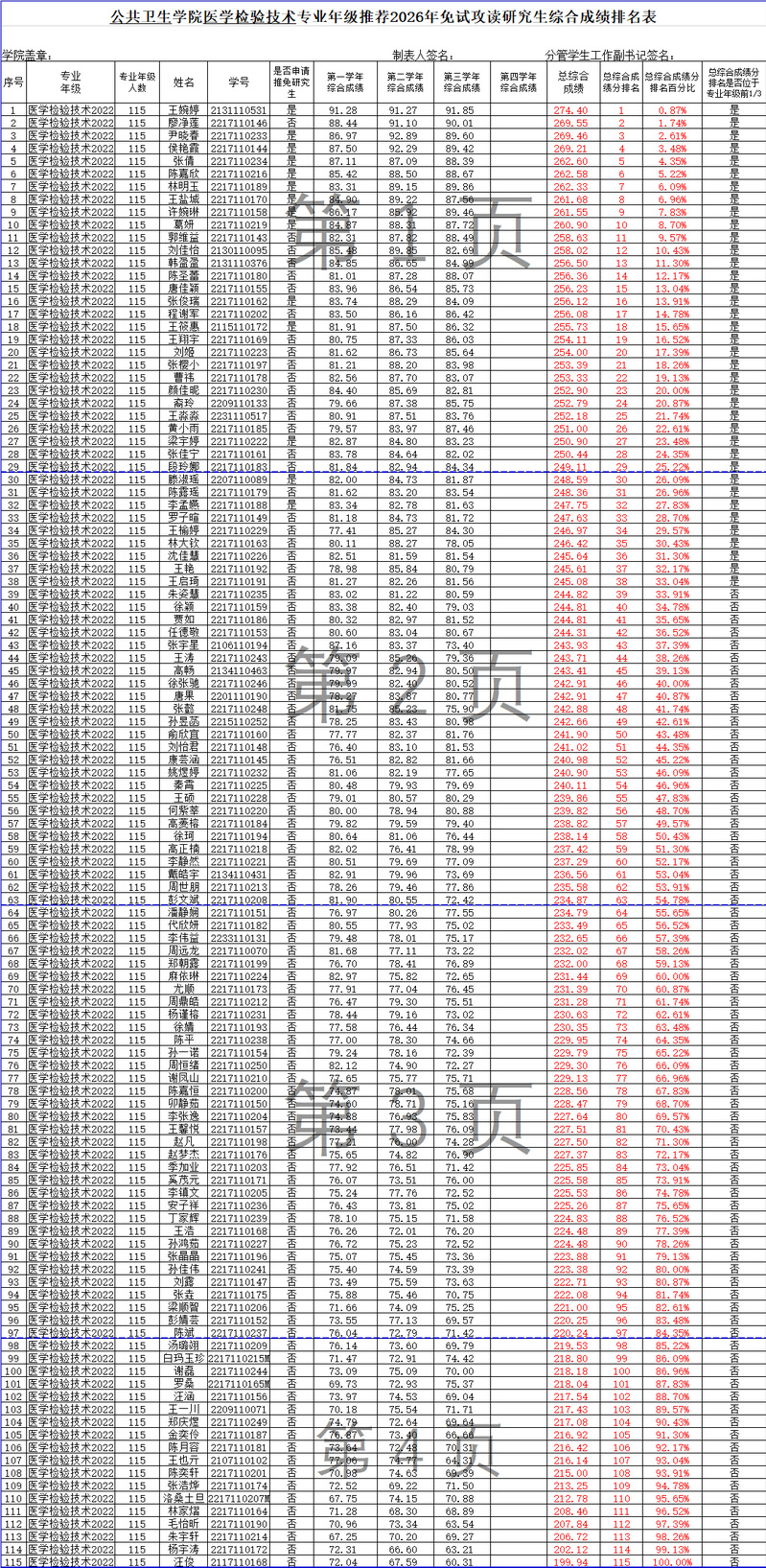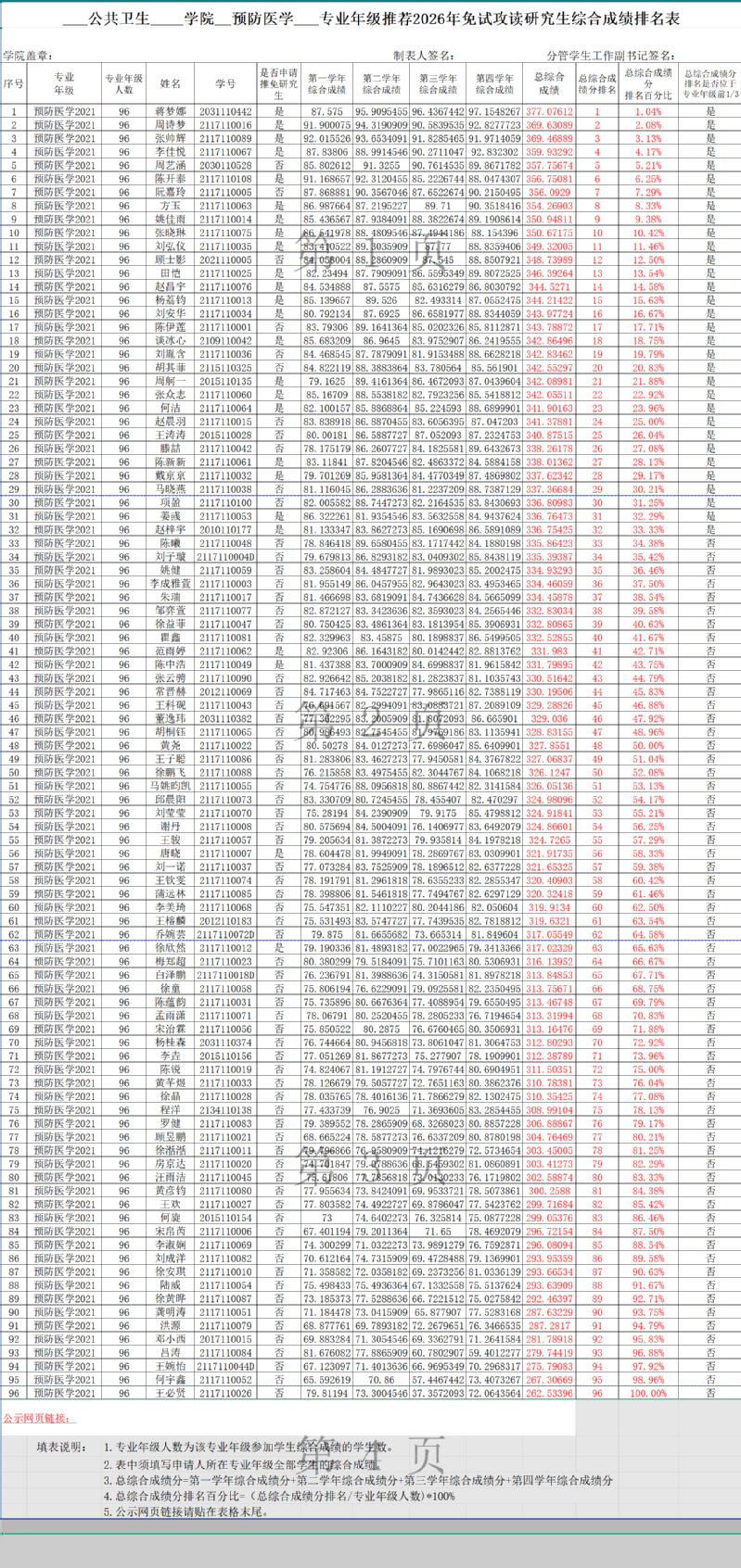 现将《推荐免试攻读硕士学位研究生综合测评成绩排名表》予以公示,敬请大家监督。