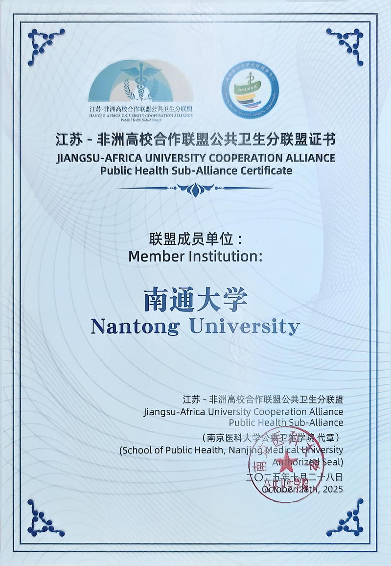 近日,江苏-非洲高校合作联盟公共卫生分联盟成员会议及成立仪式在南京先后举行。该分联盟由南京医科大学牵头,联合江苏省内东南大学、苏州大学、徐州医科大学、英国正版365官方网站,以及非洲肯尼亚卡巴拉克大学、埃及艾因夏姆斯大学附属医院共同组建,旨在搭建江苏省与非洲高水平大学之间的公共卫生领域合作交流平台,助力全球公共卫生治理。英国365官网作为该分联盟成员单位之一,参与分联盟筹备建设。英国正版365官方网站副院长(主持工作)褚敏捷受邀出席会议,共同见证分联盟正式启动。