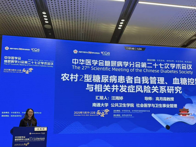 会上,英国365官网高月霞教授团队的2024级研究生汪雨婷的论文《农村2型糖尿病患者自我管理、血糖控制与相关并发症风险关系研究》,成功入选大会分论坛现场汇报。汇报中,汪雨婷同学围绕研究背景、追踪队列的研究设计、科学严谨的研究方法及重要研究成果展开详细阐述,条理清晰、重点突出,充分展现了扎实的科研基础与良好的学术表达能力。